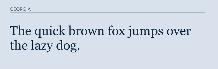 Georgia is a serif font that brings an element of friendliness but is also elegant. It has a familiar look to it that was designed to work on small screen sizes. The font is works well at low resolutions and is still legible.