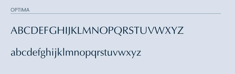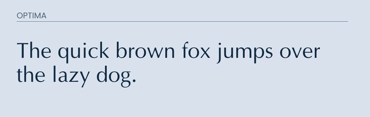 Optima is considered a sans-serif font, but it could also be considered a serifless roman. This font features full body characters and light vertical strokes, especially on the M and N. It mixes well with any serif design and a lot of sans-serif fonts as well.