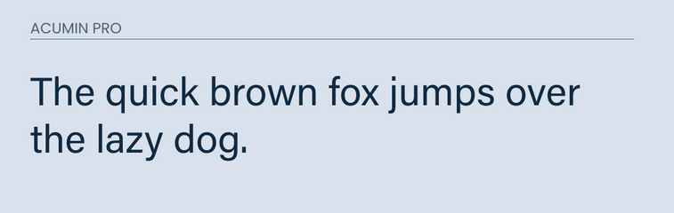 Acumin Pro is a sans-serif font that works great on all display sizes. It is balanced and solid. It works best for clean, modern design.