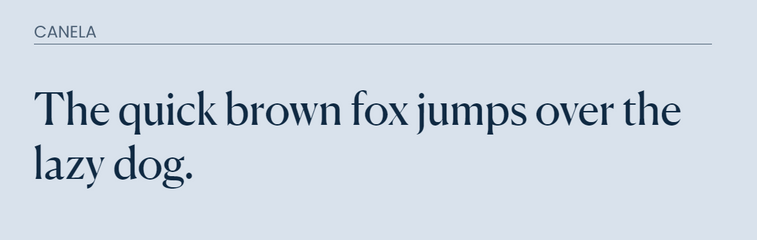 Canela is a display typeface that bridges this gap between sans and serif. It is a modern font with hints of classical text in it. It is a delicate font that has easy flared strokes. As the font progresses through different weights, it carries itself differently but still maintains it's elegance.