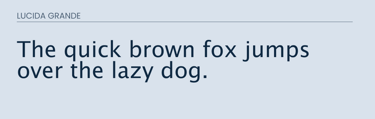 Lucida Grande is a popular sans-serif typeface made popular with it's use through macOS. It is easy to read and is approachable yet professional.