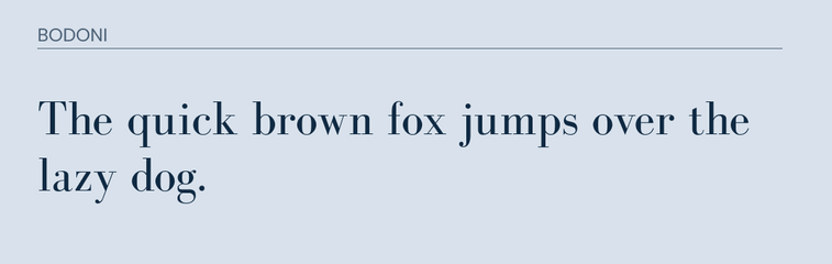 Bodoni is a serif font created by Giambattista Bodoni. This modern font was originally inspired by Baskerville. It is now modernized for web use.